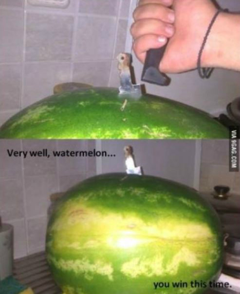 칼보다 강도가 강한 강철 수박이 등장해 누리꾼들에게 웃음을 선사했다.
