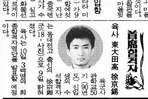 1989년 12월 신문 스크랩 화면에서 서경석은 ‘육사 50기(90년도) 신입생 수석합격자’ 주인공으로 ‘동대전고 출신의 서경석(18)군’이라고 보도돼 있다. 이 같은 사실은 이미 서경석이 지난 2007년 MBC ‘황금어장-무릎팍도사’에 출연해 밝힌 것이기도 하다. 당시 서경석은 “아버지의 사업 실패로 집안 형편이 어려웠다. 내 길이라 생각한 적은 없었지만, 국가에서 학비를 지원하는 육사에 지원하라는 아버지의 권유를 거절할 수 없었다”고 고백한 바 있다.