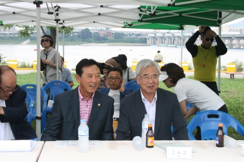 483명 씩씩한 학생들이 참가했다. 여기에 서울시 교육위 부위원장인 최명복(66) 교육의원이 참석해 1.4km의 한강을 학생들과 함께 건넜다. 그것도 약 35분만에 주파해 주위를 놀라게 했다.