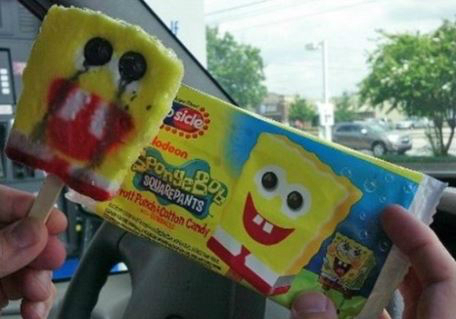 공개된 사진 속 아이스크림은 박스 포장에 그려져 있는 애니메이션 캐릭터 '스폰지밥'과 사뭇 다른 분위기를 풍긴다.