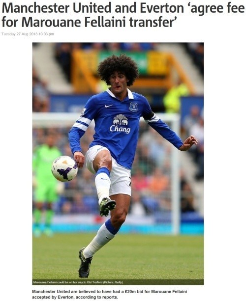 데이비드 모예스 감독도 “펠라이니와 5년 동안 함께했고 그가 맨유로 이적하는 것을 결정해 기쁘다. 훌륭한 능력과 강점을 가진 선수다. 팀에 차별성을 가져다 줄 것이다”고 기대의 뜻을 내비쳤다.