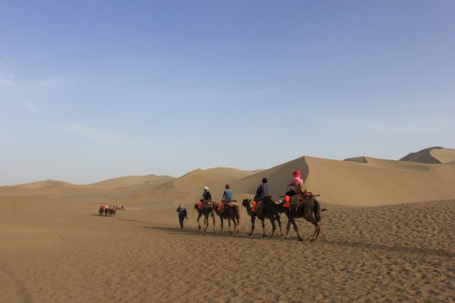 일몰 후 사막에는 모래 바람과 별빛달빛만이 남는다. 때가 마침 정확히 추석을 한달 앞둔 시점이라 보름달이 두둥실 떠올랐다. 주변에 연인들을 바라보니 사랑을 달에 빗대 표현한 등려군의 ‘월량대표아적심’이 저절로 흥얼거려진다. 마침 사막의 모래 바람이 불면서, 흥얼거림에 맞춰 모래산이 마치 관현악 연주를 하는 듯한 느낌이다. 사랑의 감정이 두근두근 솟아나는 명사산의 밤은 나름 아름다운 추억을 남긴 채 그렇게 깊어져갔다.