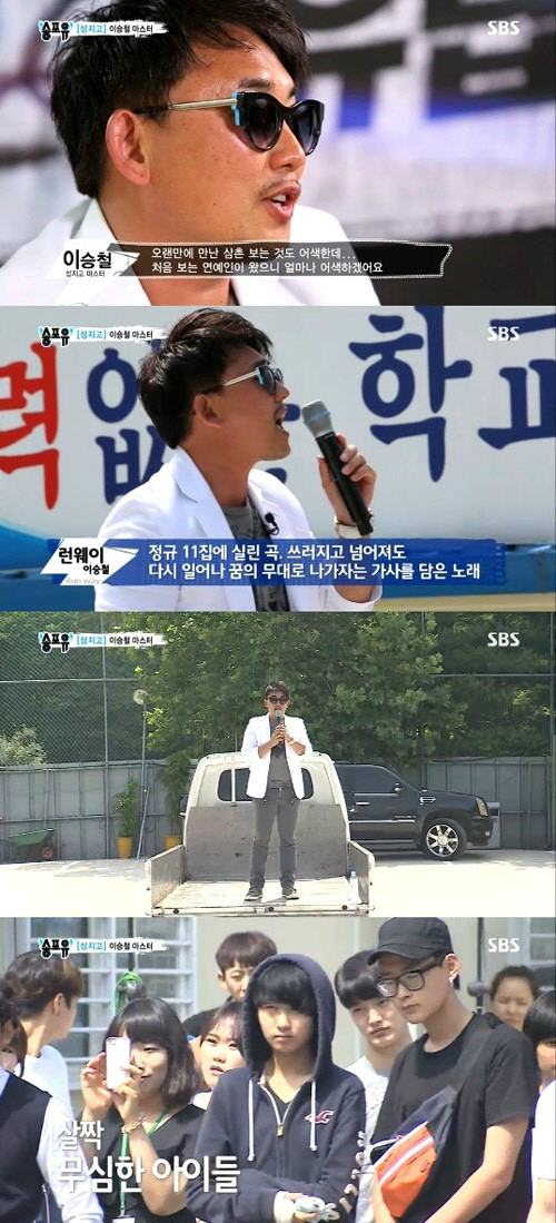 이어 그는 자신의 11집에 수록된 곡 '런웨이'를 열창했지만 성지고 학생들은 무덤덤했다. 특히 몇몇 학생들은 "노래 생각보다 못한다"라는 말까지 해 이승철을 당황케 했다.