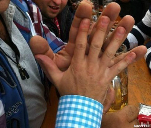 실제 맥주캔을 마치 요구르트 병 잡듯 착시효과를 일으키거나 맞댄 손을 아기 손으로 만들어 버리는 엄청난 크기의 손이 누리꾼들의 시선을 사로잡은 것.