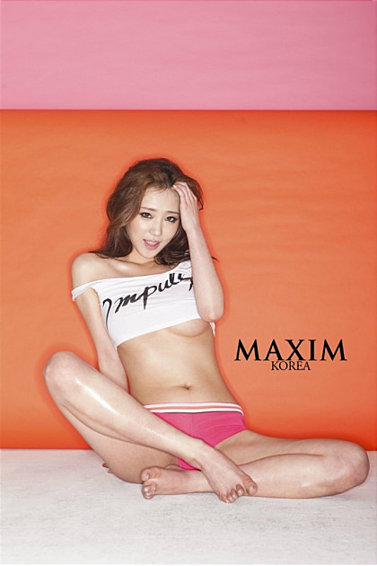 평소 육감몸매로 잘 알려진 엄상미는 맥심 화보 촬영에서 민소매와 속옷 하의만을 입고 있다. 특히 군살 없는 몸매와 볼륨감 넘치는 가슴이 눈길을 끌고 있다.