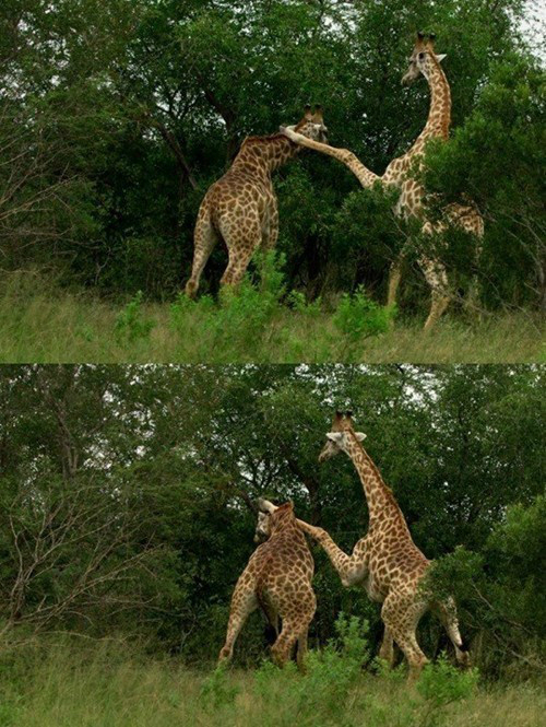 최근 각종 온라인 커뮤니티에는 ‘태권 기린’이라는 제목의 사진이 올라와 눈길을 끌고 있다. 공개된 사진 속에는 한 기린이 다리를 높게 들어 다른 기린의 목 부위를 가격하고 있는 모습이 담겨 있다. 이는 기린이 먹이 쟁탈과 짝짓기를 위해 동족끼리 싸움을 벌이는 모습이다.