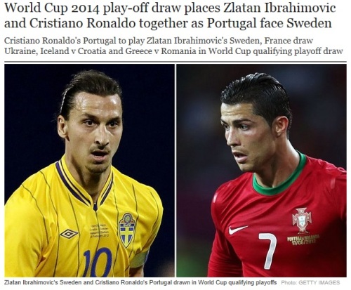 유럽 지역 예선에서 각 조 2위에 오른 8개 나라가 15일(현지시간)과 19일에 홈 앤드 어웨이로 맞붙어 월드컵 본선에 나갈 4개 나라를 정한다. 이 가운데 국제축구연맹(FIFA) 랭킹 14위 포르투갈과 25위 스웨덴의 맞대결이 하이라이트다. 특히 양 팀의 주공격수 크리스티아누 호날두(레알 마드리드)와 즐라탄 이브라히모비치(파리 생제르맹)의 ‘빅뱅’에 관심이 집중되고 있다. 호날두와 이브라히모비치는 지난 주말 소속팀 경기에서 나란히 해트트릭을 기록, 물오른 득점 감각을 뽐내고 있다.