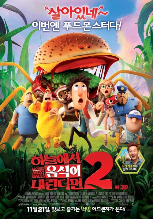 할리우드 애니메이션 ‘하늘에서 음식이 내린다면2’도 21일 극장가에 첫 선을 보인다. ‘음식이 살아있다면 세상에는 어떤 일이 펼쳐질까?’라는 상상력에서 출발한 ‘하늘에서 음식이 내린다면2’는 엉뚱한 발명가 플린트의 기계가 살아 있는 푸드 몬스터를 만들어 햄버거미, 악어타코, 수박코끼리 등 푸드 몬스터들이 사람들을 위협하고, 이를 막기 위한 플린트와 친구들의 짜릿한 모험이 펼쳐진다는 내용의 어린이 애니메이션이다.