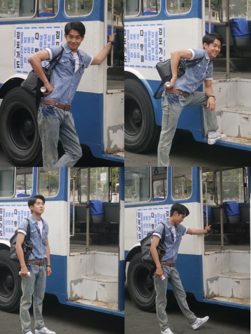 JYP 공식 페이스북 (http://www.facebook.com/jypnation)을 통해 공개된 MBC 드라마 페스티벌 ‘수사부반장-왕조현을 지켜라’ 촬영 현장 사진 속 최우식이 복고풍 데님 패션을 완벽하게 소화하며 패셔니스타의 면모를 보인 것.
