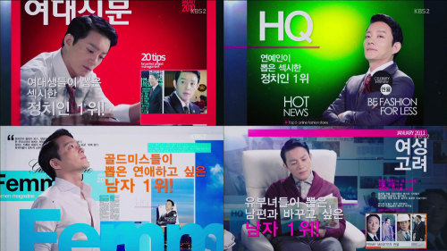 이범수는 극중 ‘여대생들이 뽑은 섹시한 정치인 1위’, ‘연예인이 뽑은 수트발 정치인 1위’, ‘골드미스들이 뽑은 연애하고 싶은 남자 1위’, ‘유부녀들이 뽑은 남편과 바꾸고 싶은 남자 1위’를 차지한 매력남답게 지적이면서도 섹시한 총리로 변신해 눈길을 끌었다.
