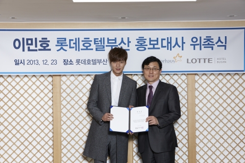 롯데호텔부산은 12월 23일, 한류스타 이민호와 함께 홍보 대사 위촉식 및 사진 촬영을 진행했으며, 향후 1년간 롯데호텔부산의 대표 모델로 대외적인 홍보 활동은 물론 한류 이벤트 등 다양한 활동에 참여할 예정이다.