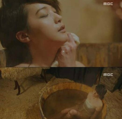 공개된 사진은 MBC 드라마 '기황후' 12회 방영분으로 유인영은 극중 남장 여자인 연비수 역으로 출연해 아찔한 목욕신을 연출했다.