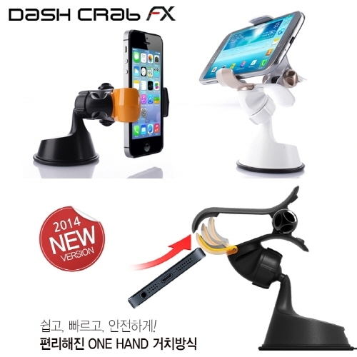 대쉬크랩FX는 대쉬크랩 시리즈의 기존모델인 대쉬크랩 듀엣과 대쉬크랩2의 기능을 한 단계 업그레이드 시킨 제품으로, 핸드폰을 한 손으로도 거치가 가능한 한 손 거치대이다. 360도 회전은 물론, 둥근 형태의 물체까지도 거치가 가능하여 스마트폰 외에도 다양한 물건을 거치할 수 있다.