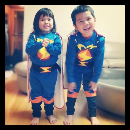 공개된 사진 속에는 아빠 김진표와 엄마 윤주련을 쏙 빼닮은 모습의 아들 윤민건 군과 딸 윤규원 양의 모습이 담겨 있다. 아이들은 파란색 바탕에 가슴쪽에 번개 무늬가 새겨진 캐릭터 옷을 입고 장난스럽게 웃고 있는 모습을 보여 보는 이들로 하여금 귀여움을 느끼게 하기에 충분했다.