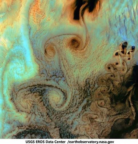 오징어 얼굴 구름은 미국 알래스카 알류산 열도 상공에서 랜드셋7 위성이 촬영한 사진인 것으로 전해졌다.