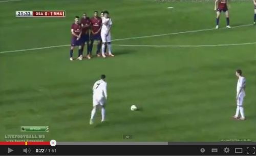 5년 만에 발롱도르를 거머쥔 호날두는 강력한 프리킥으로 선제골을 넣으며 레알 마드리드의 8강 진출을 이끌었다. 호날두는 전반 21분 골대와 25m 떨어진 페널티 지역 왼쪽에서 프리킥을 시도했다. 호날두의 장기인 무회전 프리킥이 골키퍼 정면으로 향했고, 골키퍼는 손을 갖다 댔지만 공은 땅으로 떨어졌다가 튕겨 오르며 엉덩잉에 맞고 그대로 빨려 들어갔다. 골키퍼는 망연자실한 표정을 지을 수밖에 없었다.