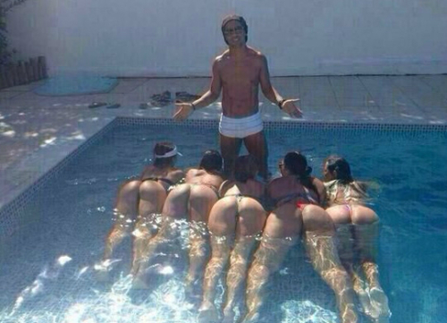 영국의 축구 전문 매체‘커트오프사이드’는 최근 가십 코너를 통해 “호나우지뉴가 5명의 섹시 비키녀들과 수영장에 있는 장면이 포착됐다”며 사진 한 장을 공개했다. 이 사진에는 수영복만 걸치고 서 있는 호나우지뉴를 향해 비키니를 입은 여성 5명이 엎드려 있다.