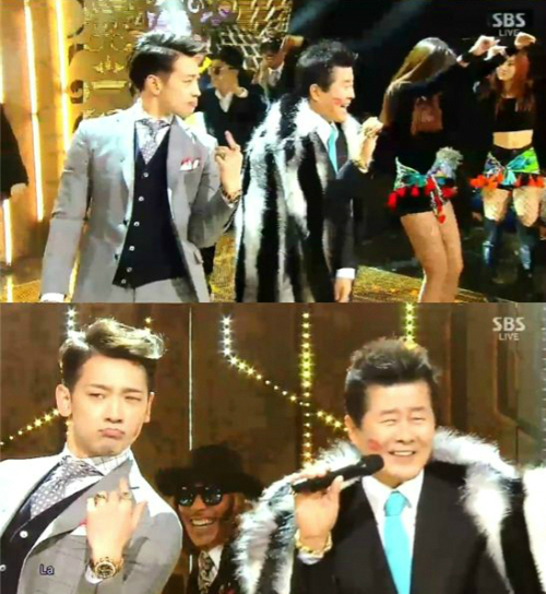 26일 오후 방송된 SBS '인기가요' 에서 비진아(비+태진아)가 마지막 콜라보레이션 무대를 선보였다.