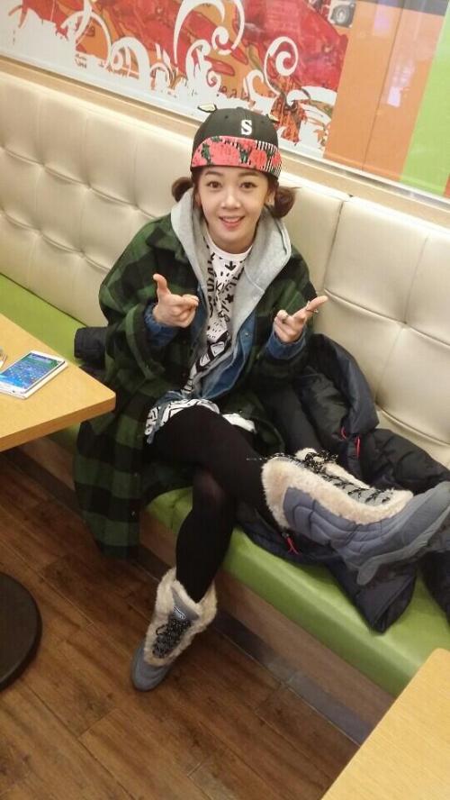 사진 속 김보미는 깜찍한 포즈와 표정으로 선물 받은 아웃도어 부츠를 자랑하고 있다. 따뜻한 퍼가 트리밍 된 방한 부츠와 독특한 모자로 포인트를 준 그녀의 스타일은 올 겨울 유행하는 트렌디한 패션이다.