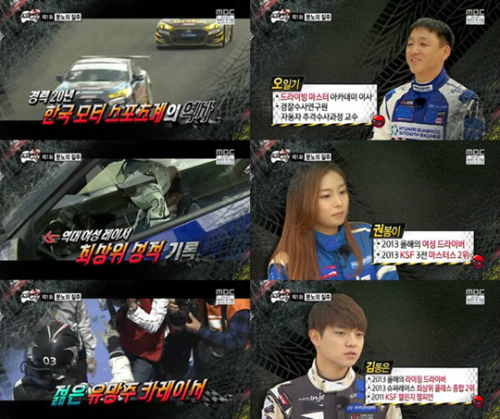 22일 방송된 MBC 주말 예능프로그램 ‘무한도전’에서는 카레이싱 도전기 ‘스피드 레이서’ 첫 번째 이야기가 전파를 탔다. 이날 멤버들은 강원도 인제 서킷에 모여 멘토가 되어줄 선수 오일기, 권봄이, 김동은을 만났다.