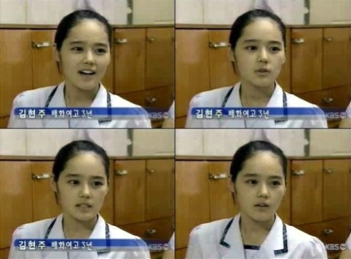 당시 화면을 보면 한가인은 지금과 전혀 다르지 않는 인형 미모에 단정한 교복차림으로 인터뷰를 하고 있다. 특히 한가인 본명인 김현주와 배화여고 3년이라는 자막이 눈에 띈다.