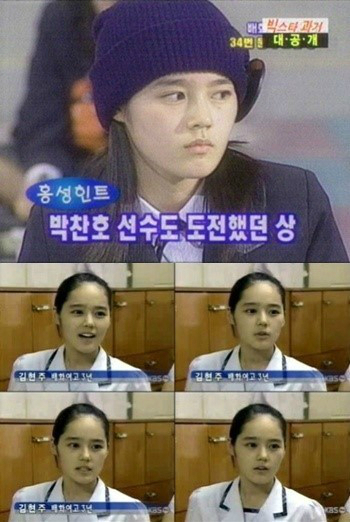 22일 한 온라인 커뮤니티에는 한가인이 고등학교 시절 출연했던 KBS '도전 골든벨' 사진과 KBS 9시 뉴스 출연 사진이 올라왔다.