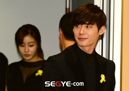 이날 배우들은 검은색 옷차림에 노란 리본을 달고 등장해 세월호 희생자를 애도하는 예를 갖췄다. 배우들은 굳은 표정으로 사진촬영에 임했다.