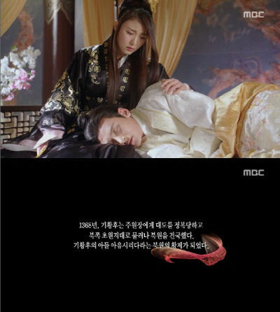 이날 방송에선 타환이 승냥의 품에 안겨 "사랑한다. 양이야"라고 말한 뒤 숨을 거둔 뒤 말미에는 "1368년 기황후는 주원장에게 대도를 정복당하고 북쪽 초원지대로 물러나 북원을 건국했다. 기황후의 아들 아유시리다라는 북원의 황제가 되었다"라는 자막이 등장해 눈길을 모았다.
