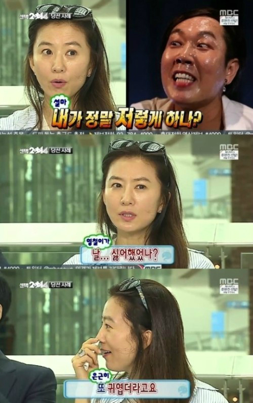 이날 해외 출국에 앞서 유재석의 초대로 '무한도전'에 등장한 김희애는 김영철이 하는 자신의 성대모사에 대해 "내가 정말 저렇게 하나 싶었다"고 말했다.