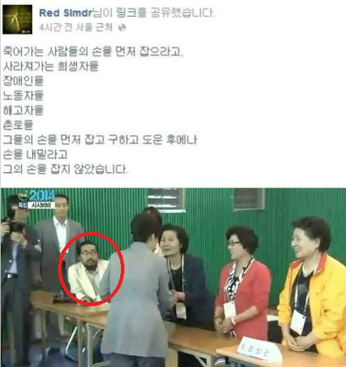 이후 김한울 국장은 SNS에 “죽어가는 사람들의 손을 먼저 잡으라고…사라져가는 희생자들, 장애인들, 노동자들, 해고자들의 손을 먼저 잡고 구하고 도운 후에나 손을 내밀라고 그의 손을 잡지 않았습니다”라는 글을 게재했다.