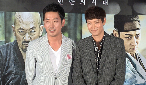 서울 강남구 삼성동 코엑스 메가박스에서 영화 '군도:민란의 시대' 제작보고회가 열렸다. 이날 윤종빈 감독을 비롯해 배우 하정우, 강동원, 김성균, 이성민, 정만식, 조진웅, 마동석, 윤지혜, 김재영이 참석해 자리를 빛냈다.