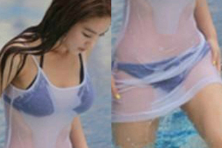 사진 속 김희정은 보라색 비키니를 입고 S라인 몸매를 드러냈다. 특히 물에 젖은 티셔츠 사이로 비치는 풍만 몸매로 더이상 어린 아이가 아님을 입증하고 있다.