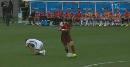 페페는 전반 37분 포르투갈의 수비 상황에서 공을 몰고 가던 중 뒤에 바짝 따라붙은 독일 선수 토마스 뮐러와의 경합 과정에서 손으로 얼굴을 쳐 넘어뜨렸다.