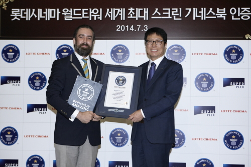 한국기록원은 단일상영관 스크린 기준으로 롯데시네마 월드타워의 스크린을 세계 최대 스크린으로 영국 기네스 월드 레코드(Guinness World Records)에 등록 시키기에 앞서, 지난 17일 한국기록원 KRI기록검증서비스팀을 현장에 파견하여 스크린의 가로 세로의 길이와 면적, 재질, 실제 영화상영 가능여부 등을 면밀히 실사한 후 대한민국 최대 기록으로 공식 인증을 먼저 확정하고 이번에 기네스 월드 레코드의 기록심판관을 한국에 초청하여 세계기록 공식 인증서를 전달받게 됐다.