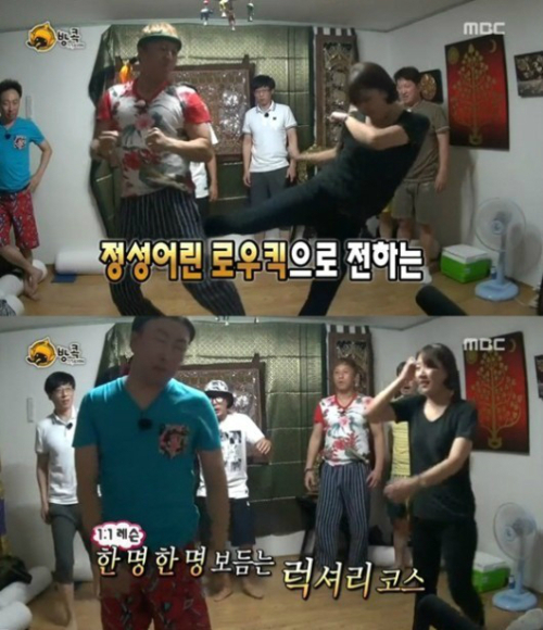 이에 지난 브라질월드컵 특집에도 출연한 김란주 작가기 무에타이 발차기를 하기 위해 등장했고, 멤버들은 긴장하기 시작했다. 이어 김란주 작가는 멤버 한 명 한 명에게 강한 로우킥을 날렸지만 멤버들은 고통을 호소하면서도 이를 악물고 참아냈다.