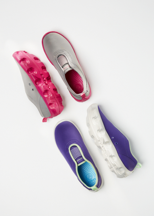 이 제품은 무게가 가볍고, 뛰어난 신축성의 소프트 쉘 소재를 사용하여 양말을 신은 듯한 매우 뛰어난 착화감을 자랑한다. 도심에서의 가벼운 워킹은 물론 바다나 강, 계곡에서 물놀이를 즐기거나 래프팅과 스노클링 등의 액티비티를 할 때도 발을 보호할 수도 있어 활용도가 높다. 중창과 구두창에 고밀도의 크로슬라이트 소재를 사용하여 기존의 아쿠아슈즈보다 쿠셔닝이나 접지력이 훨씬 뛰어나며, 슬립 온 스타일의 심플한 디자인과 선명하고 밝은 컬러 블록의 색상 조합으로 의상에 포인트를 주기 좋다.