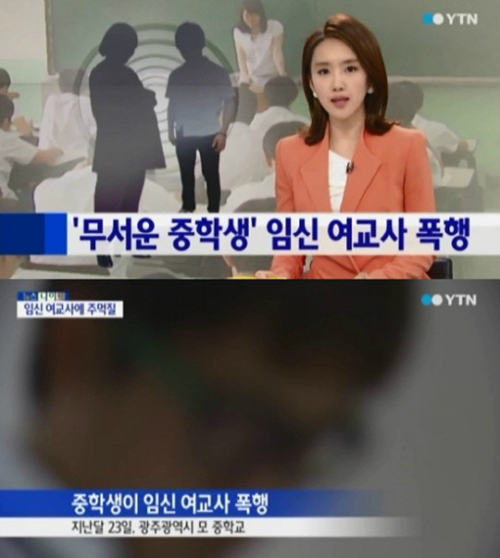 광주의 모 중학교에 재학중인 중학생이 수업 도중 임신 6개월 차의 여교사의 배를 주먹으로 폭행하는 사건이 발생했다.