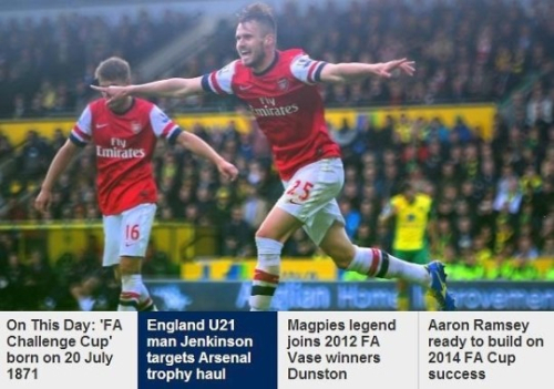 아스날은 11일 오전(한국시간) 영국 런던의 웸블리 스타디움에서 열린 2014 커뮤니티실드에서 산티 카솔라, 애런 램지, 올리비에 지루의 골에 힘입어 3-0으로 승리했다. 아스날이 우승한 것은 2004년 이후 10년 만이자 통산 13번째이다.