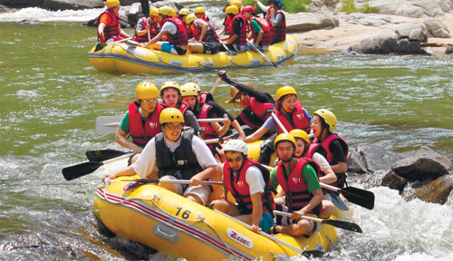 국내 최고 사행천(뱀이 기어가는 모양의 하천)인 동강에서는 굽이굽이 흐르는 강물을 따라 기암절벽과 노송이 우거진 천혜의 자연경관을 감상하며 래프팅을 즐길 수 있어 일거양득이다.