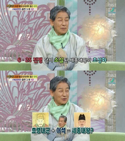 이어 이석은 “광화문에 위치한 세종대왕 동상이 내 얼굴이지 않나. 홍익대학교의 조각가 교수가 세종대왕의 얼굴을 조각하는데 어진이 6.25 전쟁 때 다 타서 관악산 효령대군의 얼굴과 '아침마당'에 출연한 내 모습 보고 만들었다고 하더라"고 털어나 모두를 놀라게 했다.