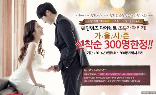 웨딩컨설팅 웨딩위즈( www.weddingwiz.co.kr)는 알뜰 웨딩족 예비부부를 위해 다이렉트특가 패키지를 준비했다. 다이렉트웨딩이란 시중에 판매되는 스드메(스튜디오, 드레스, 메이크업) 패키지를 웨딩플래너의 동행을 제외하고 할인된 비용에 제공하는 상품이다.