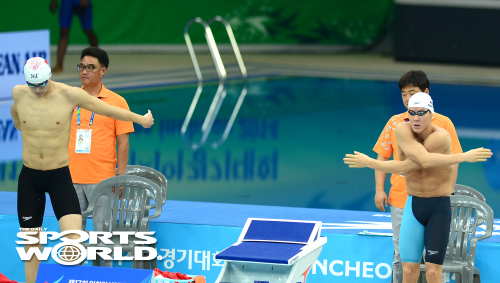 [SW포토] 박태환-쑨양, 몸을 풀며 긴장을 풀며 기사입력 2014-09-23 10:42:26 기사수정 2014-09-23 10:42:26 글씨 크기 선택 가장 작은 크기 글자 한 단계 작은 크기 글자 기본 크기 글자 한 단계 큰 크기 글자 가장 큰 크기 글자 마린보이 박태환(오른쪽)과 중국의 쑨양(왼쪽)이 23일 문학박태환수영장에서 열린 '2014 인천 아시아경기대회' 수영 남자 자유형 400m 예선에서 스타트에 앞서 몸을 풀고 있다. 문학=김재원 기자 jkim@sportsworldi.com 2014.09.23. [ⓒ 세계비즈앤스포츠월드 & sportsworldi.com, 무단전재 및 재배포 금지] 메뉴보기 페이스북 공유 트위터 공유 url 공유 더보기