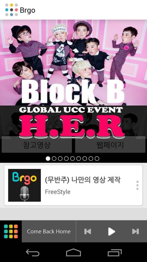 이번 이벤트는 부르고 영어와 일어버전을 통해서도 제공되며 ‘H.E.R.’뿐만 아니라 부르고를 통해 제공되는 기존에 발표한 블락비의 곡을 노래, 댄스 등으로 커버하거나 블락비에게 전해 주고 싶은 UCC를 직접 제작하여 이벤트에 지원할 수 있다.