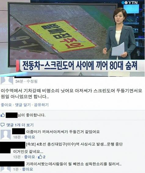 뿐만 아니라 당시 사고를 목격한 목격자들의 SNS 증언에는 "이수역에서 기차갈 때 비명소리가 났다. 아저씨가 스크린도어 두들기면서요"라는 등의 이야기들이 올라오기도 해 충격을 안기고 있다.