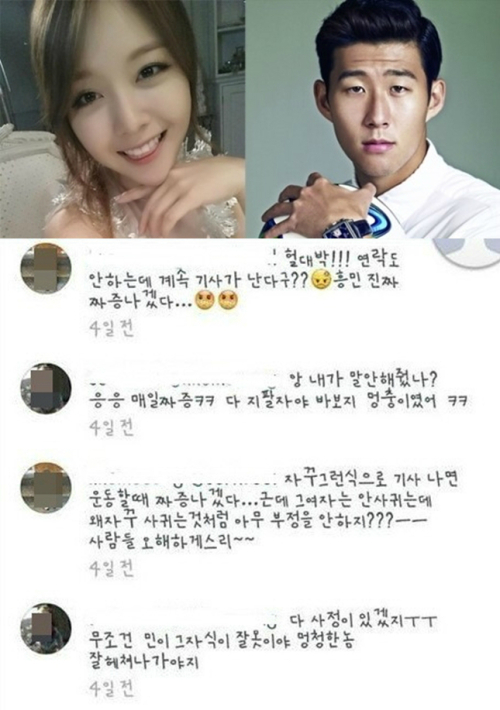 반면, 16일 축구 전문 인터넷 매체 '풋볼리스트'는 손흥민 측근의 말을 빌려 "손흥민이 민아 소속사 측의 일방적인 공식입장 발표에 당황해하고 있다"라고 전했다.