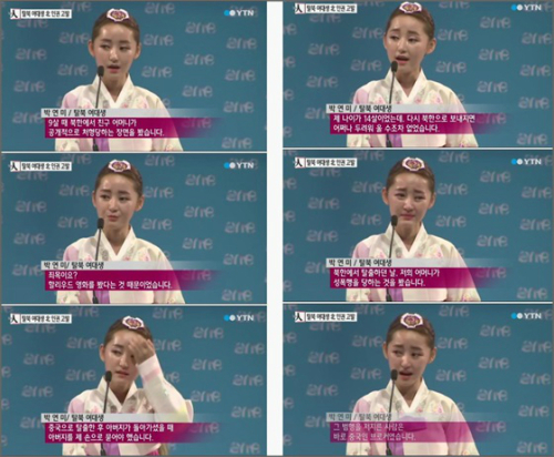 이어 그는 “북한에서 탈출하던 날, 저희 어머니가 성폭행을 당하는 장면을 봤습니다. 그 범행을 저지른 사람은 바로 중국인 브로커였습니다”라며 복받치는 울음을 주체하지 못했다.