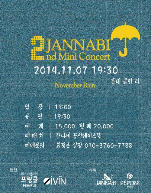잔나비는 오는 11월 7일 오후 7시 30분 서울 마포구 홍대 클럽 타(Club Ta)에서 두 번째 단독공연 ‘노벰버 레인’(JANNABI 2nd Mini Concert November Rain, 페포니뮤직 주최, 프링클·아이빈 협찬)을 연다.