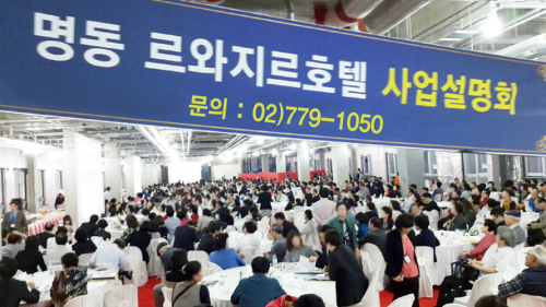 명동 르와지르 호텔은 지난 11일 사업설명회를 성황리에 마치고 11월 8일에 “2차 사업 설명회”를 개최할 예정이다. 전회와 마찬가지로 많은 인파들이 몰릴 것으로 예상돼 제2차 사업설명회에 참여하려면 예약 후 담당자 안내에 따라 사업설명회에 참여할 수 있다. (예약문의: 1599-3044)