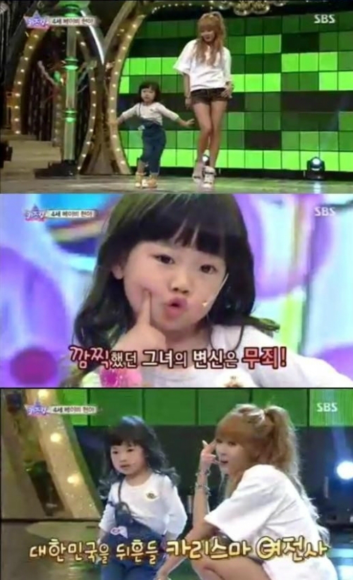 나하은은 앞서 SBS ′놀라운 대회 스타킹′에서 4살때 춤 신동으로 출연연해 현아의 ‘버블팝’ ‘체인지’에 맞춰 귀여운 안무를 선보였다.