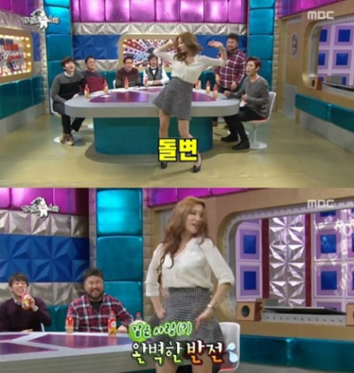 이날 방송에서 MC들은 한선천의 수준급 댄스를 감상한 뒤 정선아에게도 댄스를 요청했다.